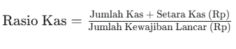 Definisi: Rasio yang mengukur kemampuan perusahaan membayar kewajiban jangka pendeknya dengan kas dan setara kas yang tersedia.