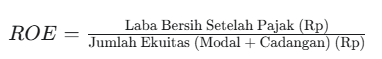 Catatan: Jika laba bersih negatif (rugdan ekuitas negatif, maka nilai ROE adalah 1.