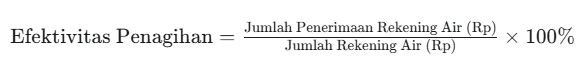 - Jumlah Penerimaan Rekening Air: Penerimaan tunai (melalui kas dan/atau bandalam satu tahun buku atas volume air yang terjual (jumlah rekening air).