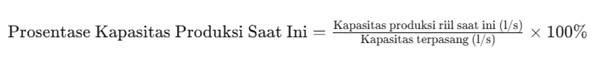 Definisi: Perbandingan antara kapasitas produksi riil saat ini dengan kapasitas terpasang (desaiseluruh unit Instalasi Pengolahan Air (IPBUMD-AM.