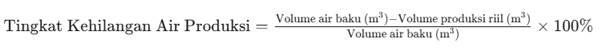 Definisi: Persentase selisih antara volume air baku yang diambil dengan volume air produksi riil terhadap volume air baku.