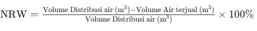 Definisi: Persentase selisih antara volume air yang masuk sistem distribusi dengan volume air yang tertagih (terjuaselama periode evaluasi terhadap volume distribusi air.