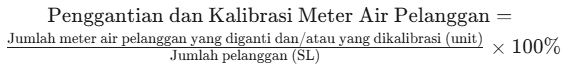 - Jumlah meter air yang diganti atau dikalibrasi: Banyaknya meter air pelanggan yang diganti baru atau dikalibrasi selama periode evaluasi.