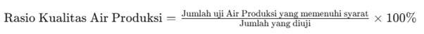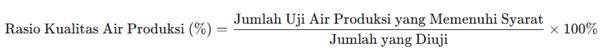 Definisi: Persentase jumlah uji air produksi yang memenuhi standar kualitas air minum sesuai Permenkes Nomor 002/MENKES/PER/I/2023 terhadap total jumlah uji air produksi yang dilakukan.