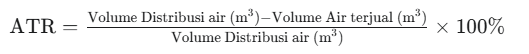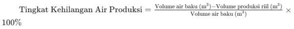 Tingkat Kehilangan Air Produksi= Volume air baku (m3)−Volume produksi riil (m3) / Volume air baku (m3) ×100%