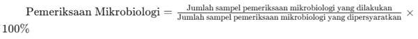Definisi: Persentase jumlah sampel pemeriksaan mikrobiologi yang dilakukan di titik serah dibandingkan dengan jumlah sampel yang dipersyaratkan dalam Perjanjian Kerjasama.