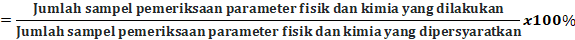 Definisi: Persentase jumlah sampel pemeriksaan parameter fisik dan kimia yang dilakukan di titik serah dibandingkan dengan jumlah sampel yang dipersyaratkan dalam Perjanjian Kerjasama.