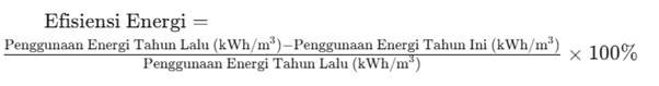 Definisi: Persentase penurunan penggunaan energi per unit volume air yang diproduksi dan didistribusikan dibandingkan dengan tahun sebelumnya.