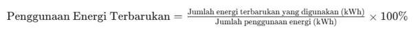 Definisi: Persentase energi yang digunakan oleh PDAB yang berasal dari sumber energi terbarukan yang diusahakan sendiri.