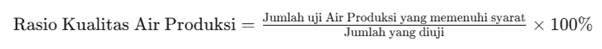 Definisi: Persentase jumlah uji air produksi yang memenuhi persyaratan kualitas air minum sesuai Permenkes Nomor 002/MENKES/PER/I/2023 terhadap jumlah uji yang dilakukan. Penilaian fokus pada 19 parameter wajib air minum sesuai Lampiran Permenkes tersebut.
